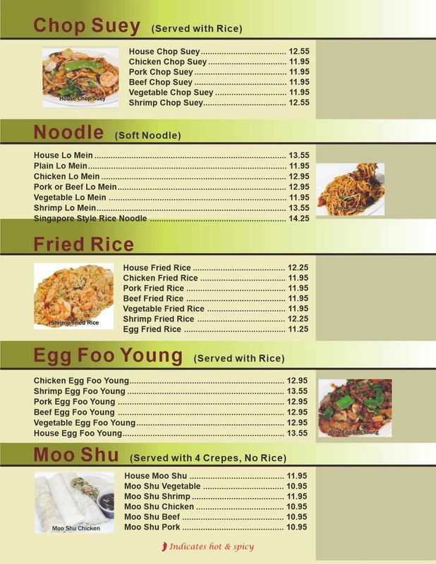 The Rice House 2 menu - Florissant MO 63033 - 314 643-9146 The Rice House 2 314 921-0711 Own this business. Soups and Salads Fried Rice Lo Mein Soft Noodles Mei Fun Vegetables Served w. Lo Mein or Plain Lo Mein 2 extra Vegetable or Chicken or Roast Pork Lo Mein 25 extra Beef or Shrimp Lo Mein 3 extra House Special Lo mein 35 extra add Extra Meat with extra Charge.
